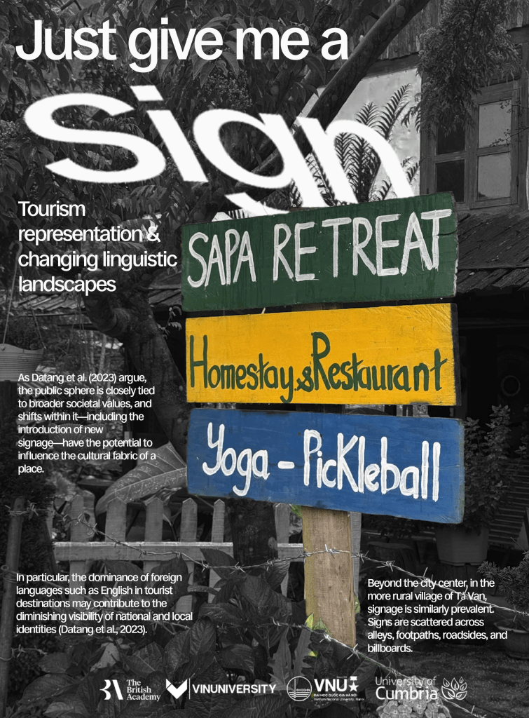 Khi Việt Nam tiếp tục mở rộng ngành du lịch, nhiều câu hỏi quan trọng được đặt ra: Biển hiệu đã làm thay đổi cảnh quan ngôn ngữ tại các điểm nóng du lịch như thế nào? Liệu biển hiệu có nên phản ánh rõ ràng hơn các ngôn ngữ và chữ viết địa phương? Các yếu tố thiết kế thị giác có thể tích hợp thẩm mỹ văn hóa bản địa hay không? Người dân địa phương cảm nhận và trải nghiệm như thế nào về sự gia tăng của biển hiệu thương mại trong không gian công cộng? Và những tấm biển này được sản xuất ra sao do nghệ nhân địa phương làm thủ công hay được sản xuất hàng loạt ở nơi khác?